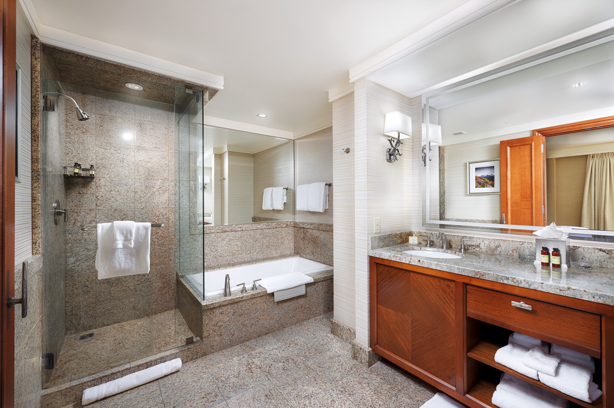 • All rooms feature granite details, upscale furnishings, flat-screen TVs, and wifi.
