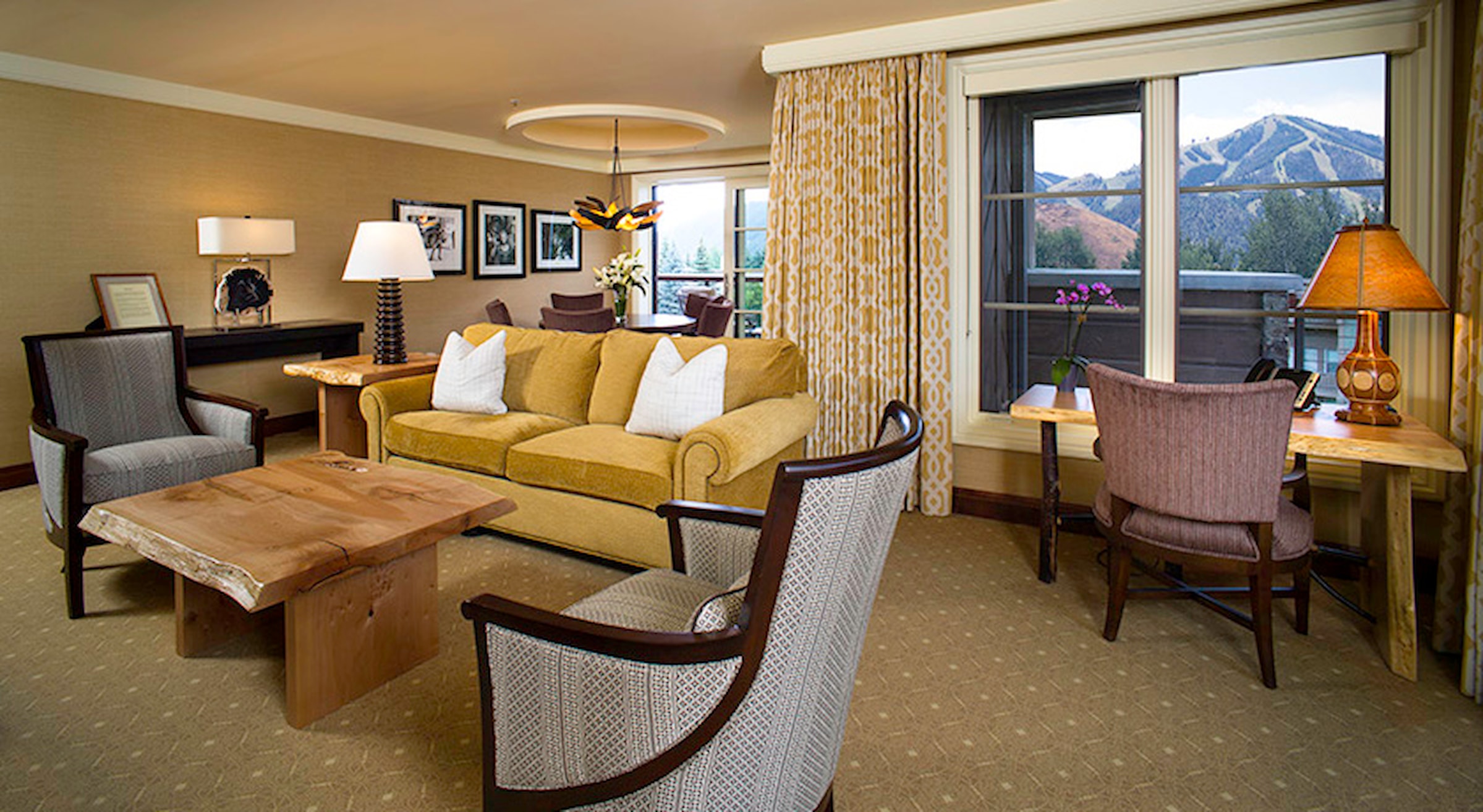 Step into Sun Valley history in these distinctive suites, each celebrating an iconic figure from our storied past—from founder Averell Harriman to celebrated figures like Ernest Hemingway, Clint Eastwood, and Marilyn Monroe. Historic photographs from our archives complement contemporary luxury in these grand accommodations. A welcoming parlor with fireplace leads into an elegant living room, while the separate king bedroom provides a peaceful retreat. The spa-inspired bathroom features a double vanity and walk-in shower, while thoughtful amenities include a pull-out sofa for additional guests.