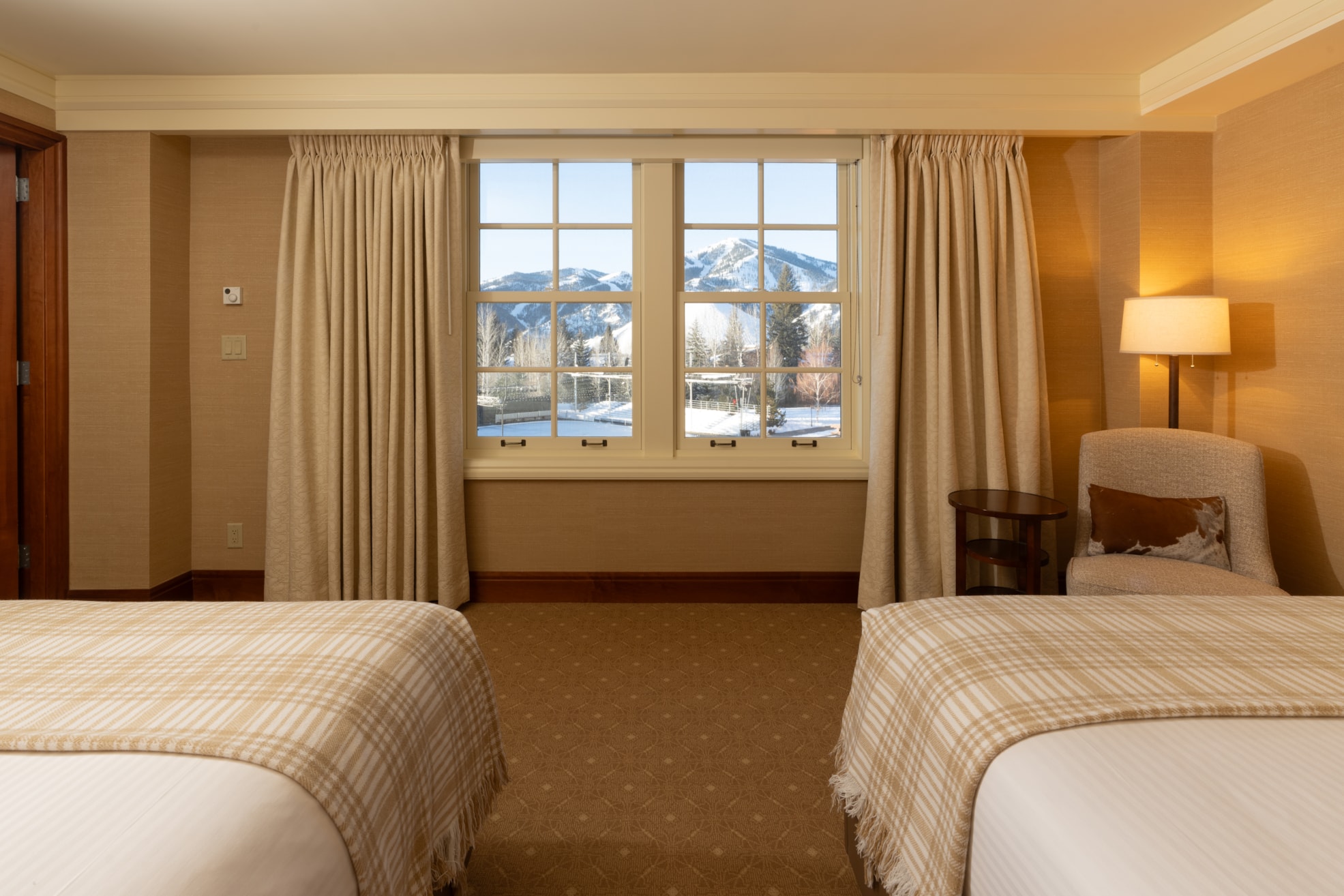 Stay with us at the legendary Sun Valley Lodge. Known as our most premiere lodging option, all of the amenities the resort has to offer are conveniently available either within the building or just a stone’s throw away. Here, guests are encouraged to enjoy the 20,000 square foot destination spa, world-class fitness center and yoga studio, glass-enclosed outdoor pool and pool café, as well as restaurants, lounges, lobbies, and event space.