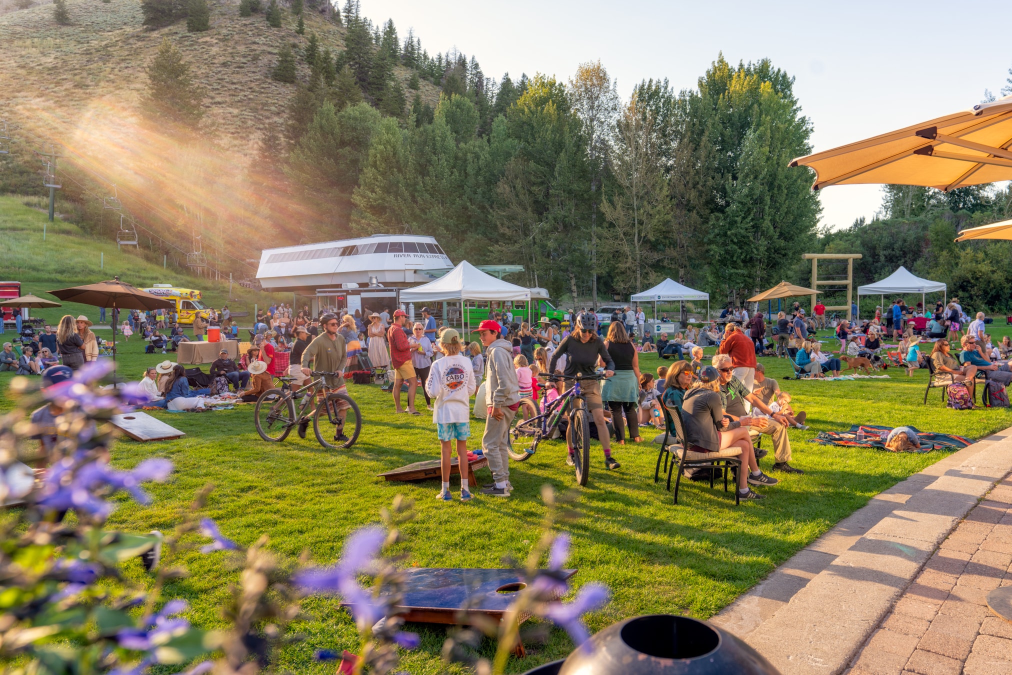Enjoy a vibrant atmosphere at the River Run base area, with live music, an outdoor bar, food trucks, ice cream, lawn games, and more!