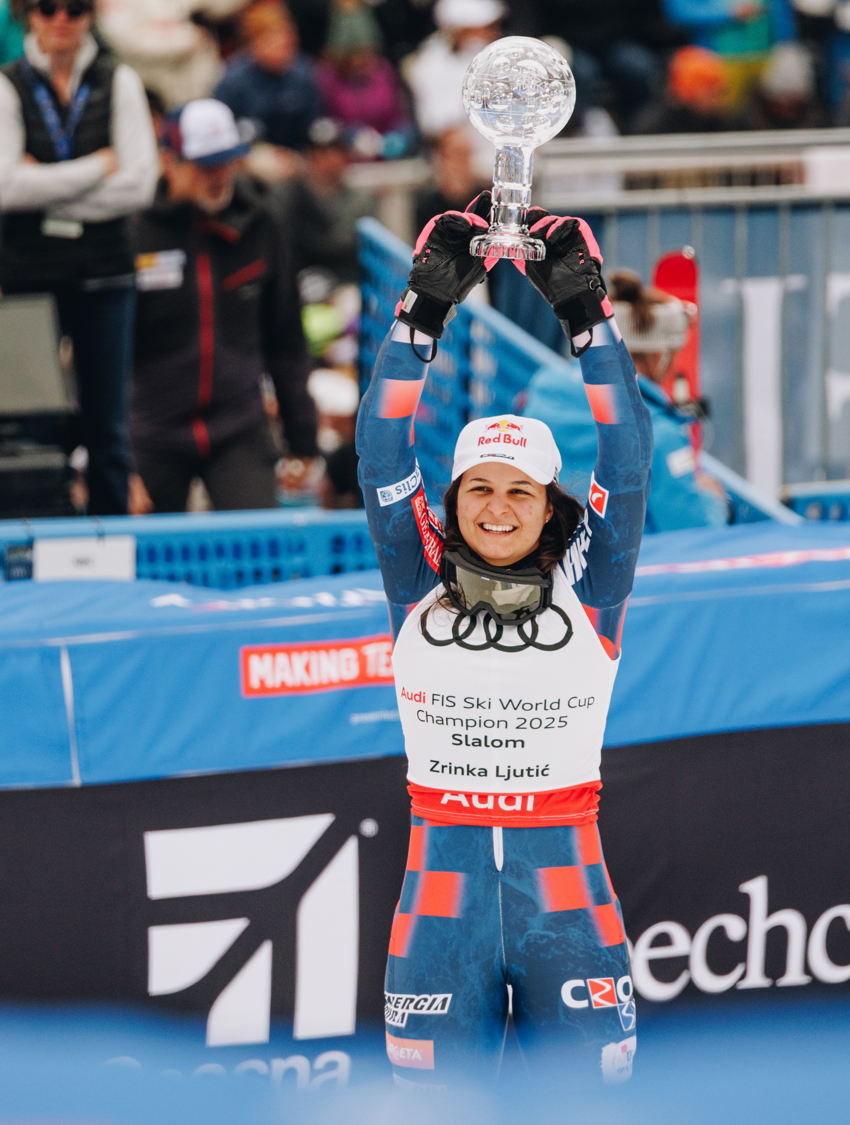 Croatian Zinka Ljutic took home the Overall Slalom Crystal Globe for women, while Katharina Leinsberger (AUT) was second and Camille Rast (SUI) third in the final season standings. Shiffrin followed in fourth place, an impressive feat after missing four slalom races earlier in the year due to injury.