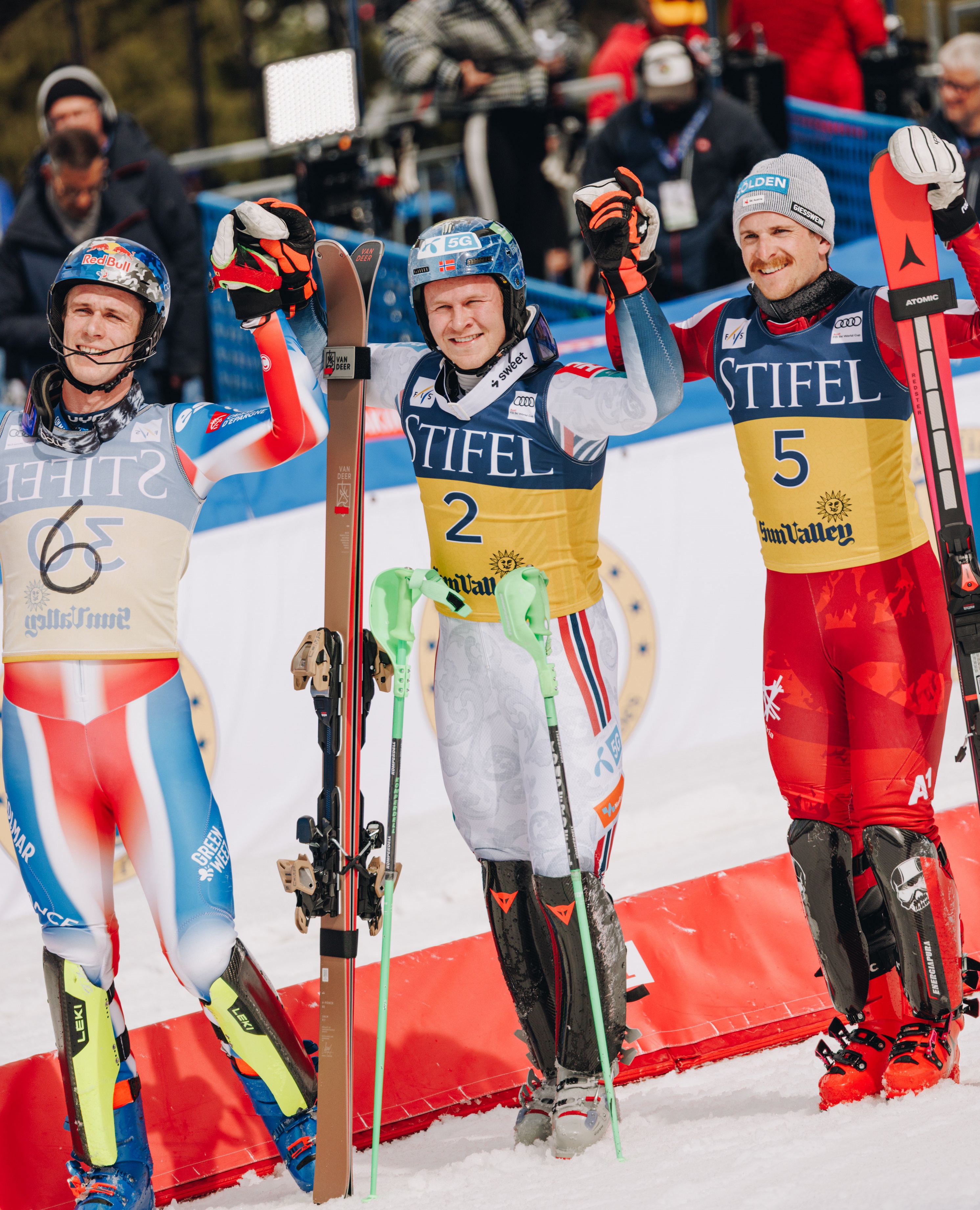 With the Slalom Crystal Globe on the line, the men’s race in Sun Valley had fans on the edge of their seats as the season came down to a dramatic final showdown. Timon Haugan (NOR) clinched first place from Clement Noel (FRA) by just 0.03 seconds. Fabio Gstrein (AUT) came in third for the day.